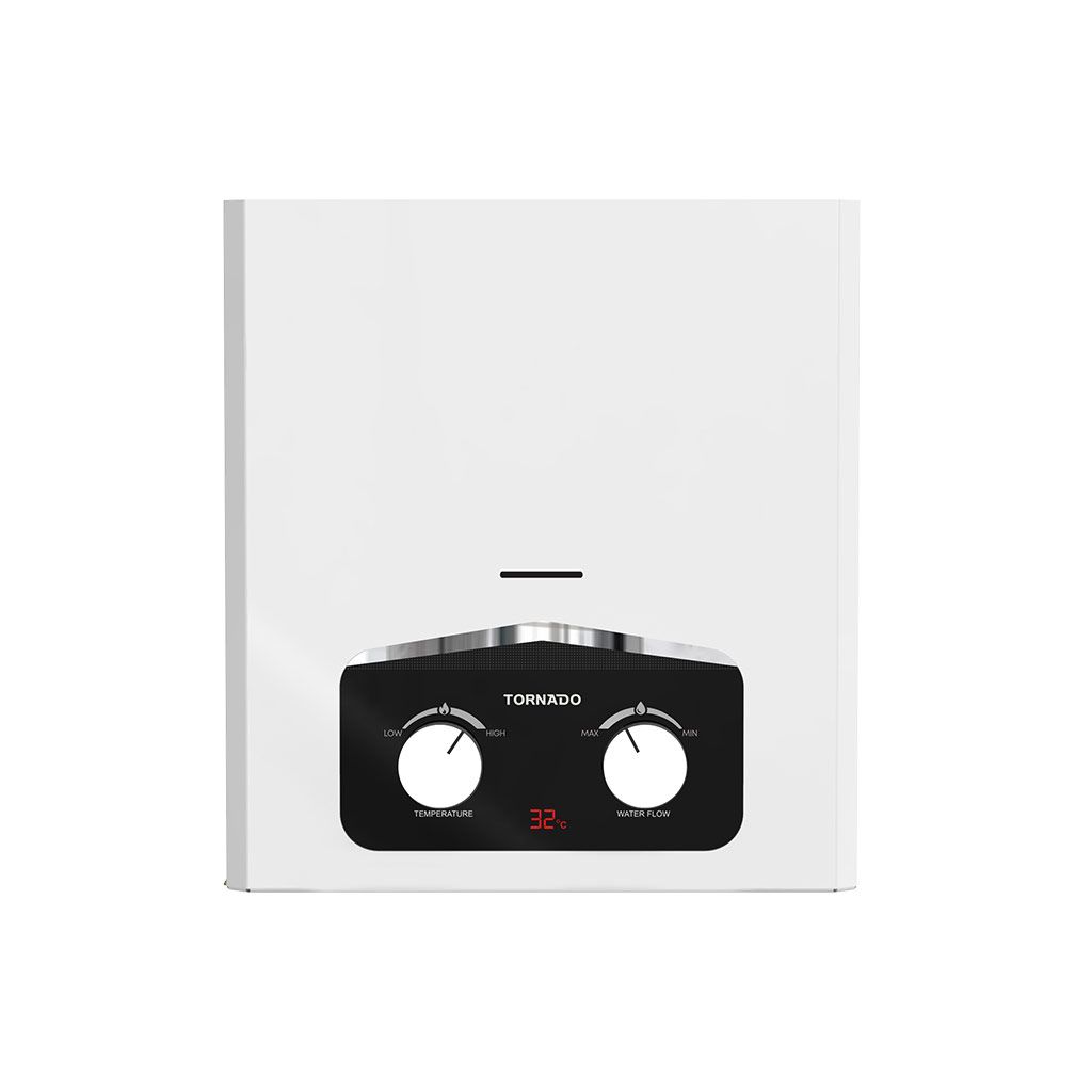 سخان مياه تورنيدو غاز بدون مدخنة مالتي باور ( بطارية - باور بانك - شاحن الموبايل )السعة اللترية لسخان المياه : 6 لترلون سخان المياه : أبيضالسخان مزود بشاشة ديجيتال لإظهار درجة الحرارةنوع الغاز : غاز طبيعينظام الإشعال الإلكتروني : شرارة أوتوماتيكية مستمرة عن طريق التحكم فى الماءنظام التحكم : تحكم خارجينظام العادم : خروج طبيعيالمبادل الحراري نحاس خالصمزود بمفتاح تنظيم قوة اللهبمزود بعامل أمان عند انطفاء الشعلة لعدم تسريب الغازمزود بمؤشر بطاريةيتميز بالفصل التلقائي بعد 20 ± 2 دقيقةإمكانية التحكم في كمية الغازإمكانية التحكم في ضغط المياهإمكانية التحكم في درجة حرارة المياهالطاقة المتعددة :-- يعمل على شاحن الهاتف المحمول ولا يؤثر على البطارية حال تشغيله- مصادر الطاقة المتعددة ( بطارية - باور بانك - شاحن الموبايل )- التبديل بين البطارية و الشاحن بطريقة تلقائية- علبة بطاريات مضادة للإحتراقوصلات السخان :-مدخل الغاز : نصف بوصةمدخل الماء البارد : نصف بوصةمخرج الماء الساخن : نصف بوصةالأبعاد ( الطول × العرض × الارتفاع ) مم :-بدون الكرتونة : 310 × 120 × 360بالكرتونة : 510 × 354 × 190وزن السخان :-الوزن الصافي : 4.75 كجمالوزن الإجمالي : 5.6 كجمبلد المنشأ : مصرضمان سخان المياه : 3 سنوات ضمان مجاني شامل